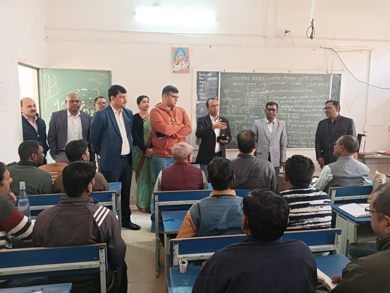 कोरबा 30 जनवरी 2025/कलेक्टर एवं जिला निर्वाचन अधिकारी श्री अजीत वसंत एवं एसपी श्री सिद्धार्थ तिवारी ने कटघोरा एवं पोड़ी उपरोड़ा विकासखण्ड में त्रिस्तरीय पंचायत आम निर्वाचन 2025 अंतर्गत मतदान दलों को दिए जा रहे प्रशिक्षण कार्यक्रम का निरीक्षण किया। उन्होंने प्रशिक्षण में उपस्थित सभी मतदान कर्मियों को ट्रेनिंग को गम्भीरता से लेने एवं मतदान प्रक्रिया को पूरी तरह से समझने के निर्देश दिए। उन्होंने कहा कि मतदान कार्य मे किसी प्रकार की लापरवाही नही होनी चाहिए सभी इसका विशेष ध्यान रखें। कटघोरा शासकीय उच्चतर माध्यमिक विद्यालय एवं पोड़ी उपरोड़ा के स्वामी आत्मानंद उत्कृष्ट अंग्रेजी माध्यम विद्यालय में आयोजित प्रशिक्षण का अवलोकन करते हुए कलेक्टर ने मतदान कर्मियों को प्रोत्साहित करते हुए ट्रेनिंग का लाभ उठाने के निर्देश दिए। उन्होंने मतदान कर्मियों से पूर्व में विधानसभा व लोकसभा निर्वाचन कार्य के दौरान मतदान केंद्रों में सुविधाओं में रही कमी के सम्बंध में जानकारी लेते हुए सम्बंधित अनुविभागीय अधिकारी राजस्व को अवगत कराने की बात कही। जिससे उन कमियों के समय पर निराकरण किया जा सके। उन्होंने सभी मतदान कर्मियों को प्रशिक्षण को गम्भीरता से लेने एवं मतदान प्रक्रिया की बारीकियों पर विशेष ध्यान देने की बात कही। इस दौरान सम्बंधित विकासखण्ड के एसडीएम, तहसीलदार, मास्टर ट्रेनर सहित अन्य अधिकारी कर्मचारी उपस्थित थे।