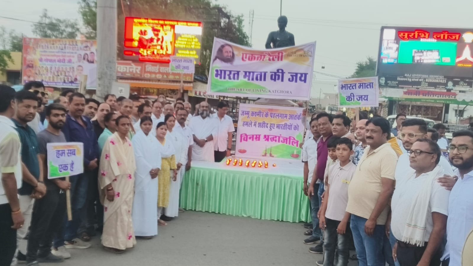 पहलगाम आतंकी हमले को लेकर कटघोरा नगरवासी एवं आर्ट ऑफ लिविंग द्वारा नगर भ्रमणकर वीर नारायण शहीद चौक मे,, दीप प्रज्वलित कर मारे गए लोगों की आत्मा की शांति के लिए प्रार्थना की गई,,