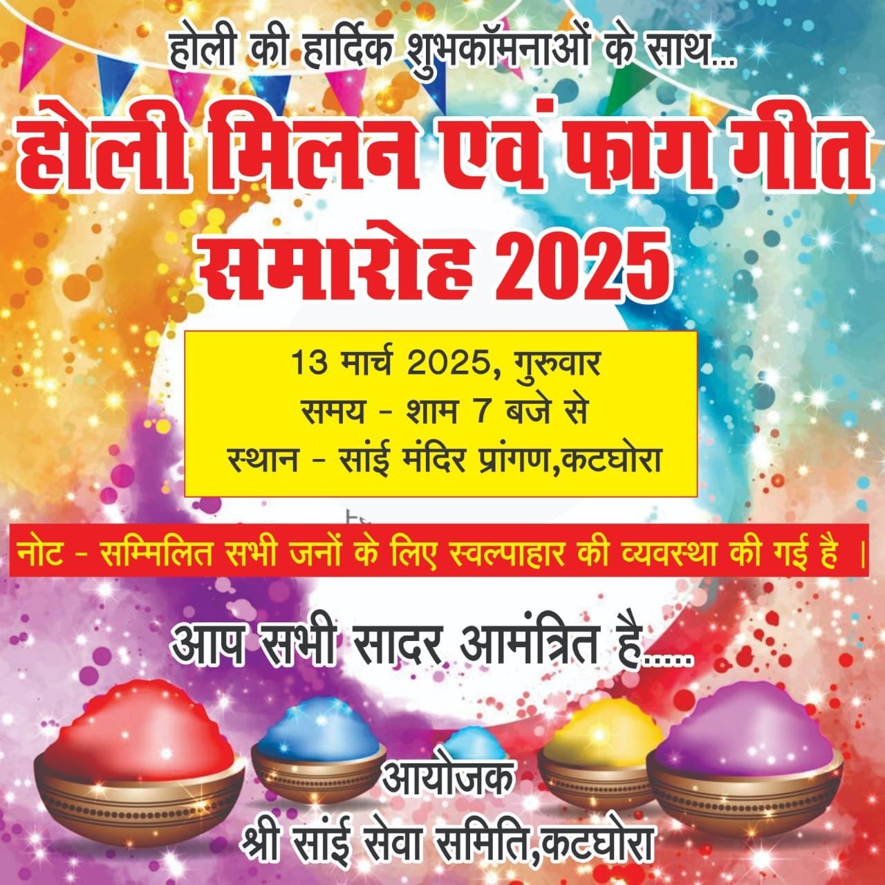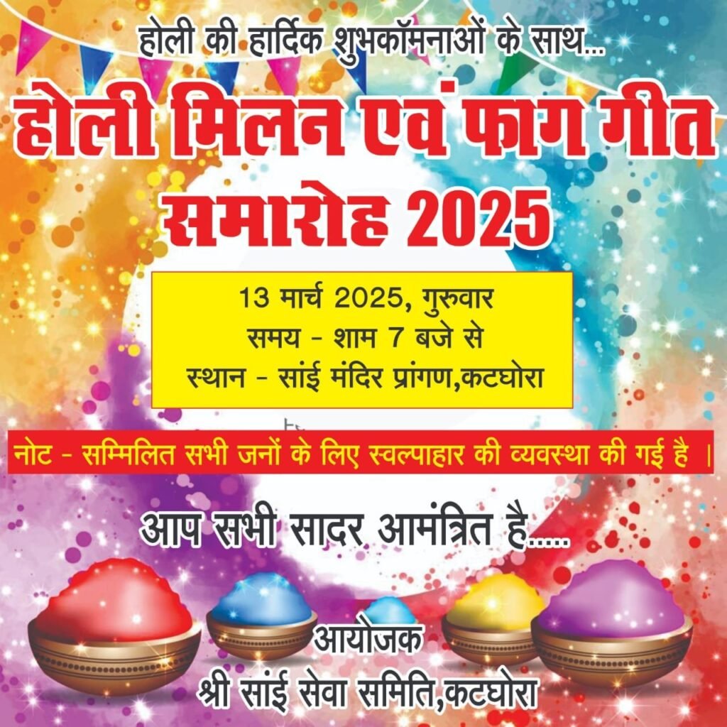 होली के धुंधार कटघोरा साई मंदिर प्रांगण में, गीतो से सुख समृद्धि उमंग प्रेम का रंग बिकेंगे, होली मिलन समारोह 2025,,,